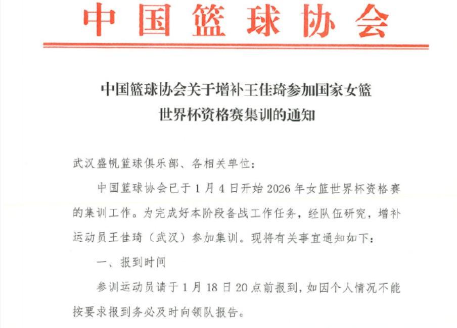 这件事情的起因,是中国女篮为了备战2026年国际篮联女篮世界杯资格赛,篮协对国家女篮的集训名单进行了细致的调整与必要的增补,来自武汉盛帆黄鹤女篮的队长王佳琦凭借出色表现成功入选国家队征召名单,她在本赛季表现很强势,作为组织后卫,她场均能够攻献11.7分4.1个篮板以及6.7次助攻(近期遇到伤病冲击)。